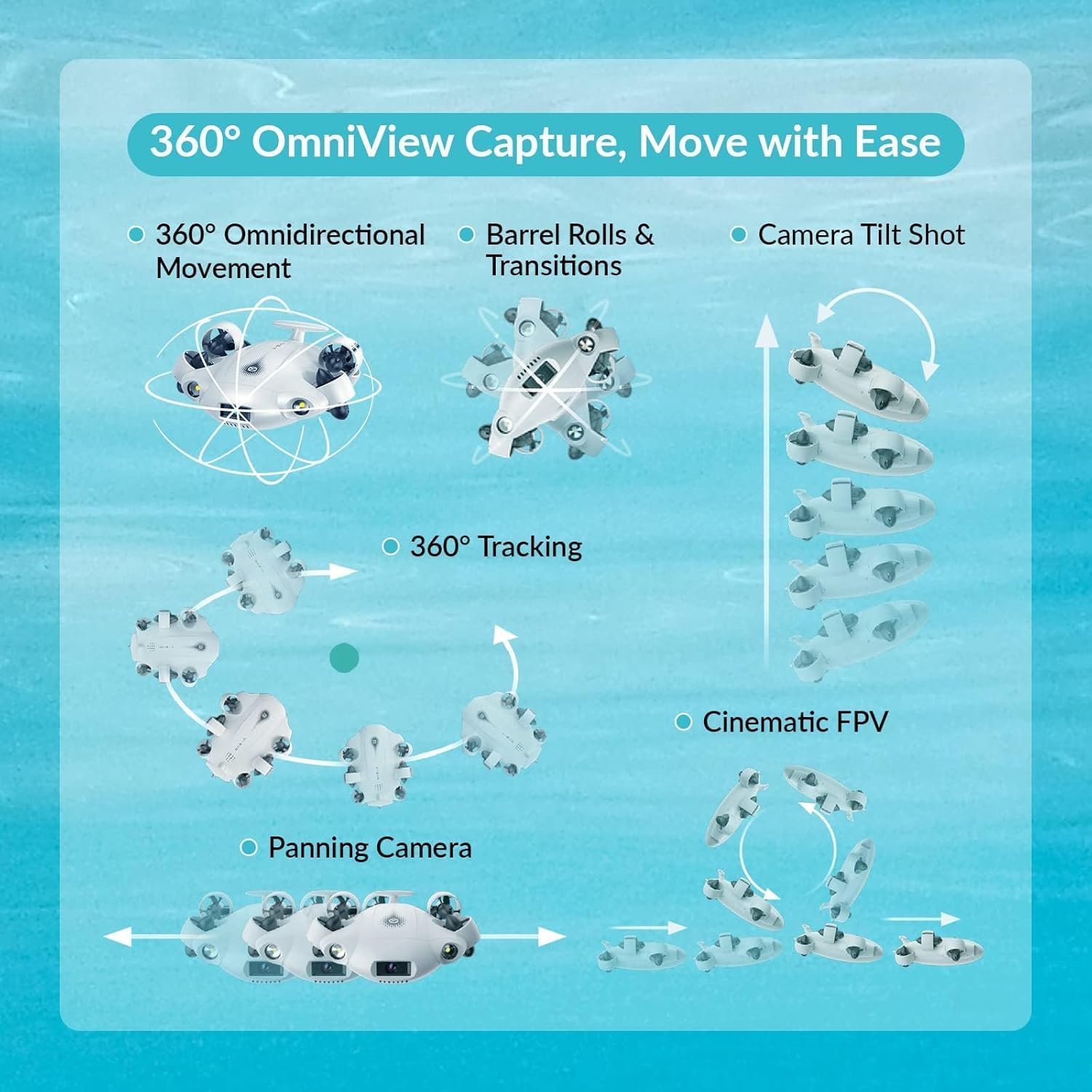 - 360° Omnidirectional Mobility: Reach beyond the limits of traditional methods, and achieve full 360° freedom in underwater mobility, hovering and posture holds. Turn your creative imagination into cinematic 4K imaging reality.